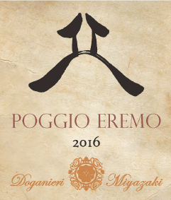 エチケットデザインには、漢字の「丘」の字をイメージにデザインし丘にある“庵” を意味するポッジョ・エレモを表現している。